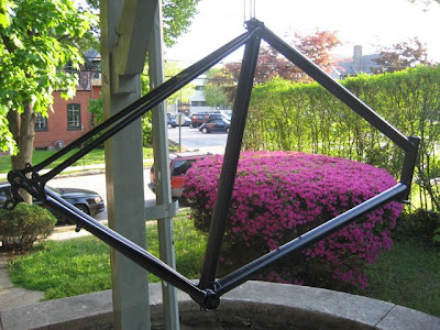 I am missing photos of the following steps. I bought some new parts. A crank and back tire. Then I flipped the handle bars and chopped them off, repositioning the brake. I only have a front brake now. Probably the hardest part was learning how to take apart and reconstruct the bottom bracket. I had to buy a few bike specific tools, but I needed them anyway. It was dirty job, but those are often the most fun. So here she is...